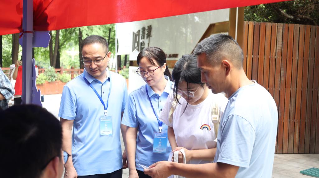 迎新现场,各项工作井然有序。书院设立了报到处、咨询处、行李搬运处等多个功能明确的服务区域,确保新生抵达后能第一时间获得指引和帮助。谭山书院直属党支部书记柏孟仁、院长王玲玲等领导老师深入迎新现场,走访各服务点,与新生及家长进行亲切交流,细致讲解报到流程,并勉励新同学们在谭山书院珍惜时光、学有所成、收获成长。