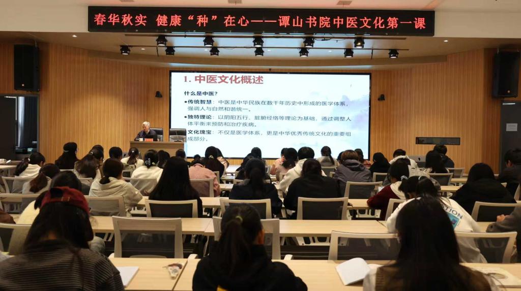 10月15日,我校退休教师张苏锋教授应邀在大学生活动中心博雅讲堂为谭山书院师生做了题为“春华秋实 健康‘种’在心”的中医文化健康讲座。谭山书院近200名师生代表共同聆听了本场报告。报告会由谭山书院执行院长王玲玲主持。