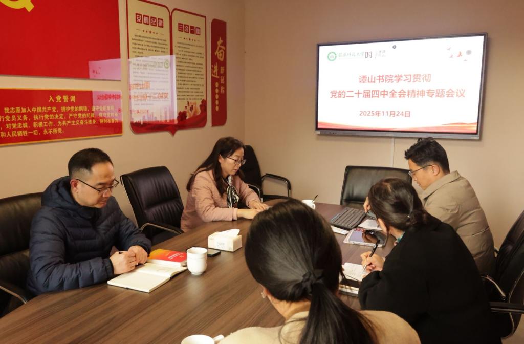 11月24日,谭山书院召开学习党的二十届四中全会精神专题会,会议由直属党支部书记柏孟仁主持。