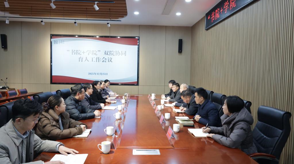 12月25日,谭山书院在大学生活动中心一楼会议室召开2025年“书院+学院”双院协同育人工作会议。各相关学院党委副书记、谭山书院全体工作人员参会,会议由书院直属党支部书记柏孟仁主持。