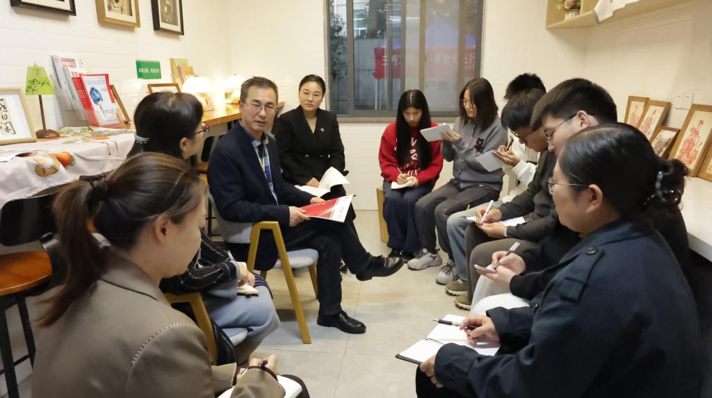为进一步搭建师生交流平台,营造社区育人氛围,10月28日,谭山书院“半日闲”功能室正式开馆。该功能室集杂志阅览区、交流区于一体,将作为书院学子读书交流、思想碰撞的重要空间,助力师生在书香中拉近距离、共话成长。本次活动特邀谭山书院社会导师赵明与优师班学员开展座谈,围绕读书与教育共探师道传承。