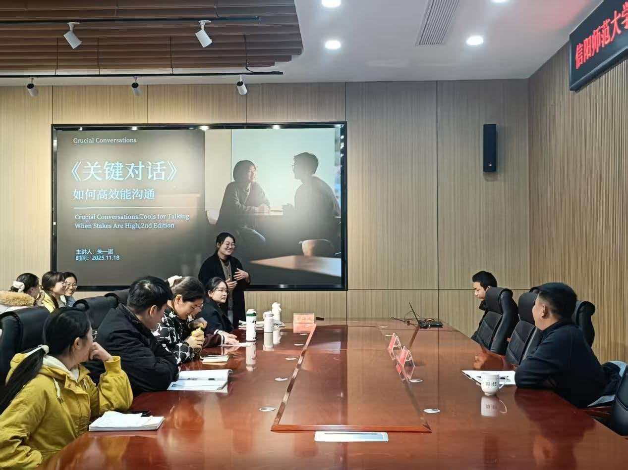 11月18日,信阳师范大学谭山书院四期优师班第一期读书分享会在大学生活动中心室举行。本次活动聚焦“沟通”这一核心主题,六位主讲人从理论到实践,深入探讨了如何以对话构建理解、以情商连接心灵。